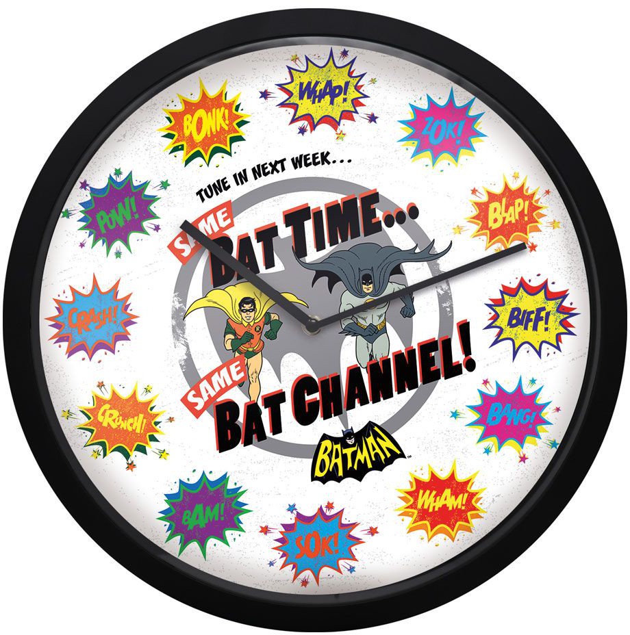 30,5 cm vægur med glastop og aluminiumsviser fra Fanattik. Lukket displayboks. Dette ur i retrostil er en hyldest til den klassiske Batman-serie og er perfekt til enhver fan af den originale serie.