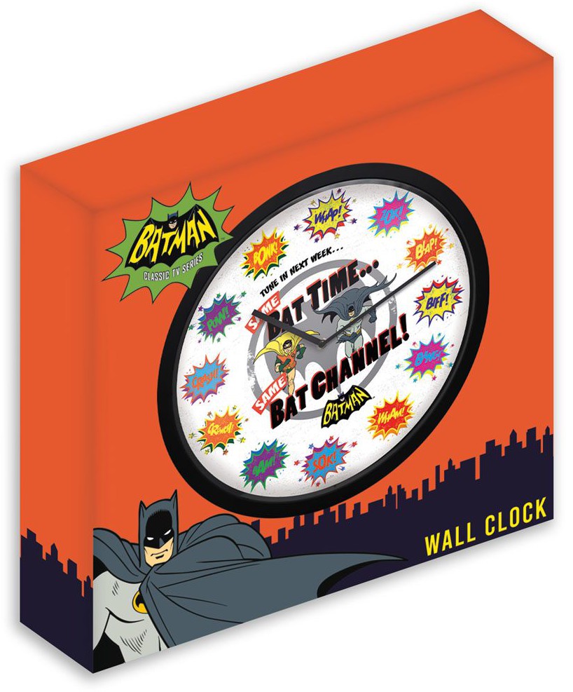 30.5cm wall clock with glass face and aluminium hands by Fanattik. Closed display box. A homage to the classic Batman series, this retro feel clock is ideal for any fan of the original series.