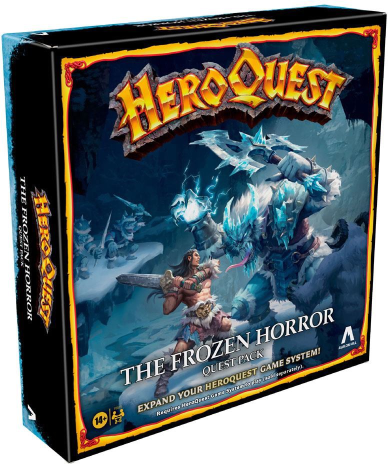 Revisit and delve deeper into the rich story of the HeroQuest dungeon crawling adventure game. With the Frozen Horror expansion, players must destroy the evil Frozen Horror, a ferocious creature long banished, but has now returned to its ancient seat of power, and awaits Zargon's summons. The powerful Barbarian must survive dangerous solo quests and only then will fellow heroes join him. Immerse yourself in the fantasy with the stunning artwork, 21 detailed miniatures, full-color tiles, and 10 exciting quests not seen in the initial HeroQuest Game System. (Requires HeroQuest Game System to play. Sold separately.) The game has limitless replayability, and you can also build their own quests and create their own stories. Gather friends together for an exciting night of tabletop gameplay in an epic battle of good and evil. The game is for 2-5 players, ages 14 and up.