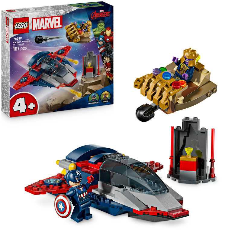 Thanos susar genom rymden i sitt rymdskepp, i samma stil som Infinity-handsken, för att stjäla en dyrbar kosmisk sten. Med rymdfarkostens missilkanon och rörliga ”fingrar” vågar ingen komma i vägen för honom! Men när Captain America kommer ikapp skurken i sin supersnygga Quinjet med dubbelkanoner – då är det dags för en stor rymdstrid!
