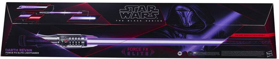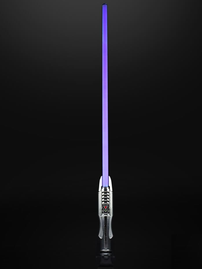 The real metal hilt features design and deco based on Darth Revan's iconic lightsaber featured in the Star Wars: Knights of the Old Republic video game. Press buttons on the hilt to activate sound effects, progressive ignition, blaster deflection effect, wall-cutting effect, and purple-to-red color-changing blade effect.