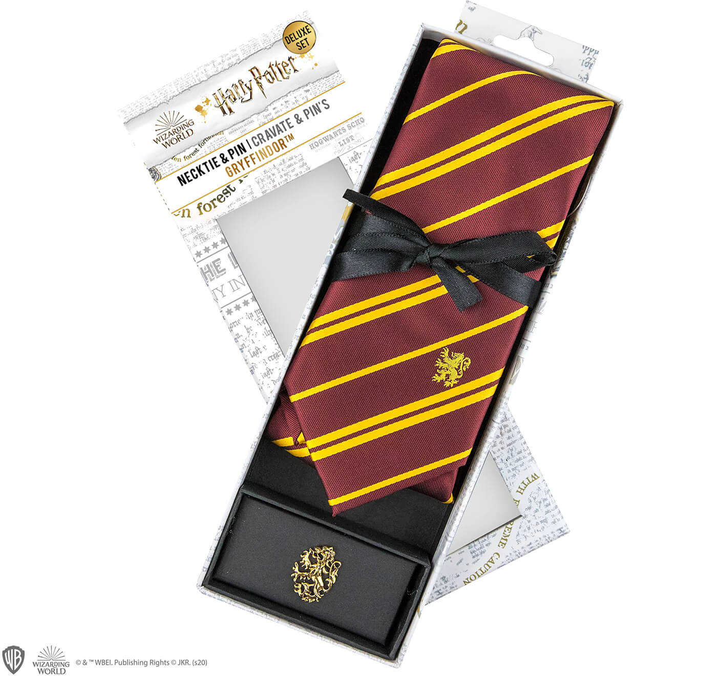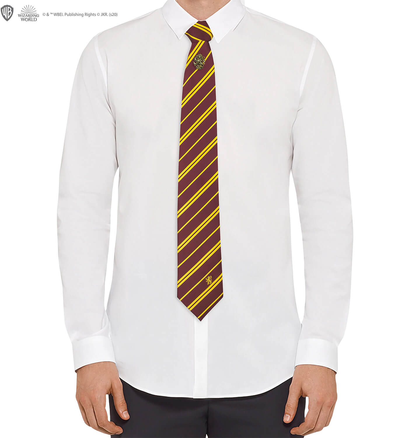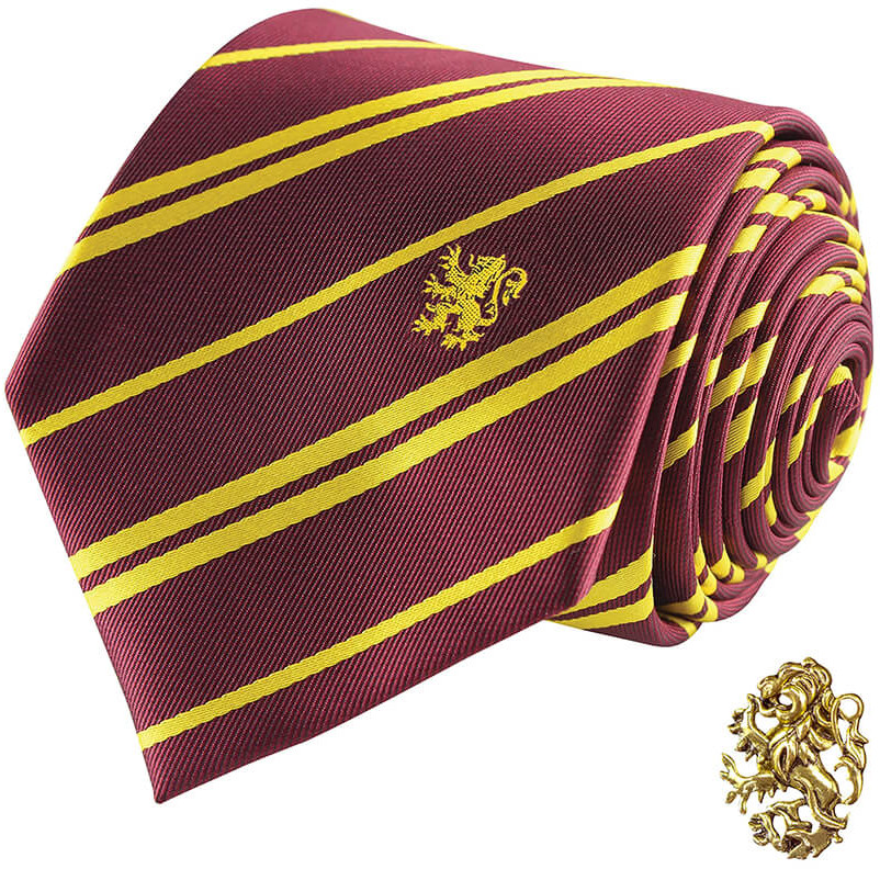 This 100% micro fibra Necktie from the Harry Potter movies measures 145 x 8 x 3,5 cm and features a printed Gryffindor patch. Comes with a metal pin in a window box packaging.