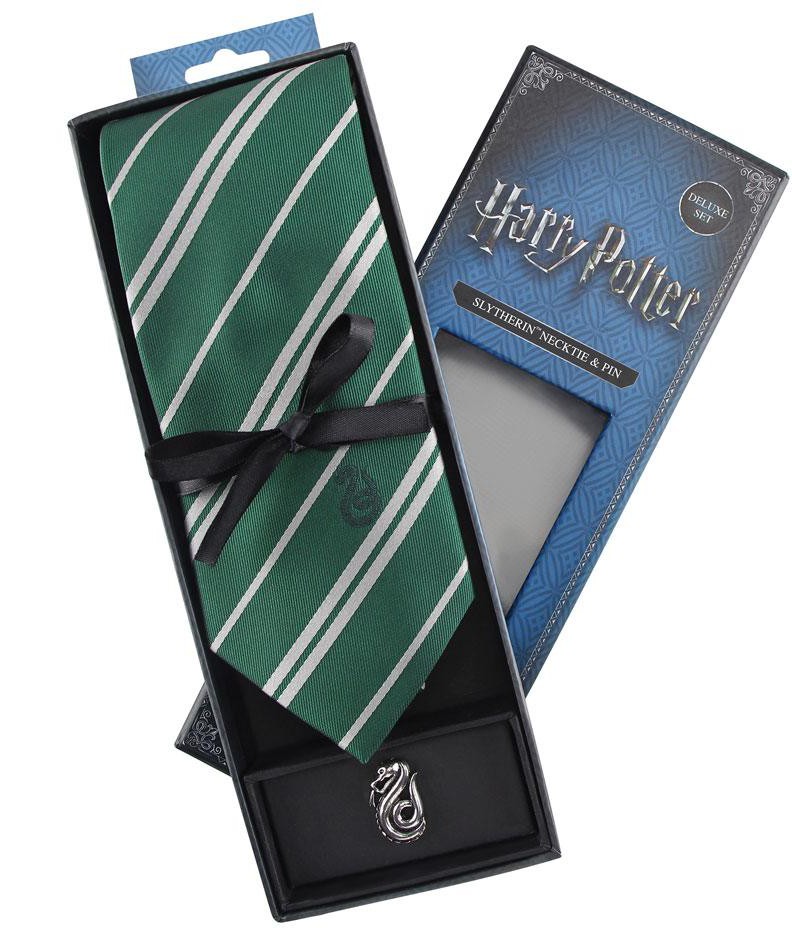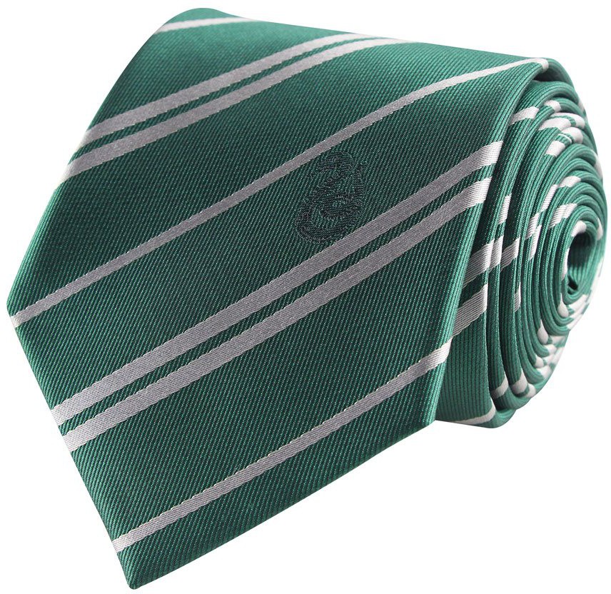 This 100% micro fibra Necktie from the Harry Potter movies measures 145 x 8 x 3,5 cm and features a printed Slytherin patch. Comes with a metal pin in a window box packaging.