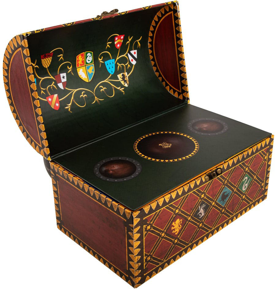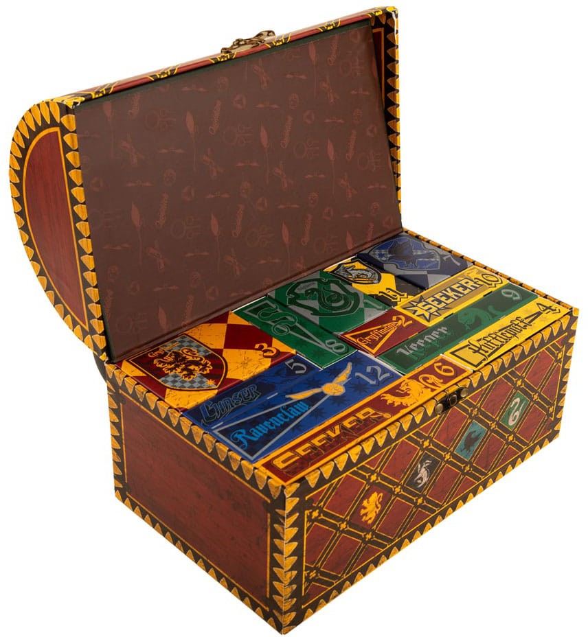 Officielt licenseret adventskalender med 24 gaveartikler med Harry Potter-tema (sokker, snorpose, magnetsæt, gummi-nøglering, gylden snook-halskæde, klistermærkesæt, bogmærke, sovende øjenmaske, linseformet pin-badge, træpynt, memo-fane, sammenklappelig vandflaske, lineal, plastikblyant, viskelæder, nål, handsker, puslespil, målebånd, hoppebold, mini quaffle squishy, vævet plaster, skopose, mylar-ballon).
