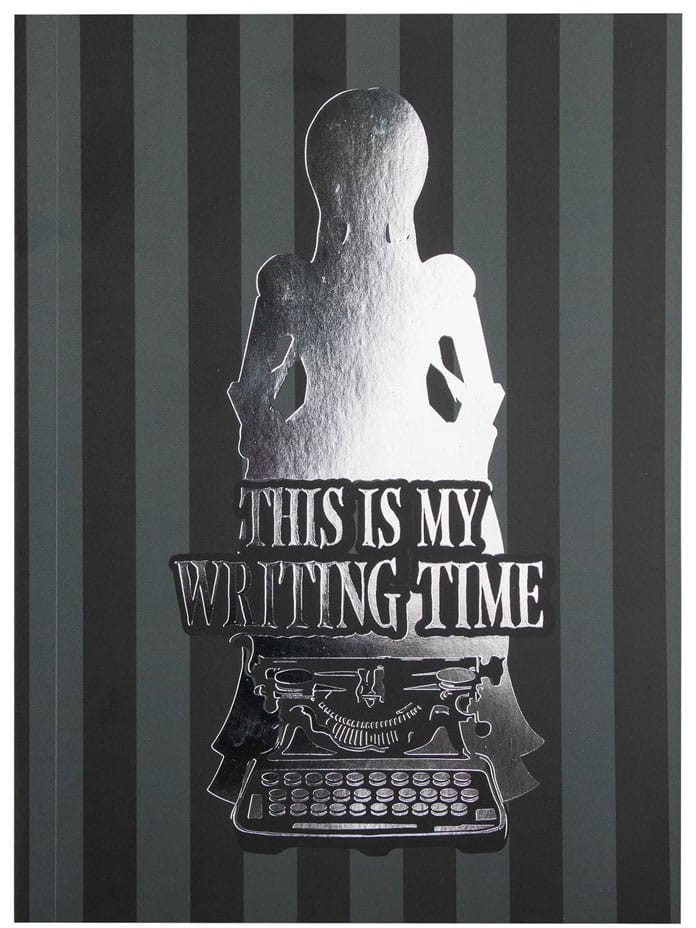 Whether you're a writer, student, or just looking for a stylish notebook, this black and grey notebook is sure to exceed your expectations. The front cover of this notebook proudly displays Wednesday's bold and inspiring phrase, "This is my Writing Time," written across a sliver silhouette of Wednesday. This design lets everyone around you know that you mean business when it comes to your writing!