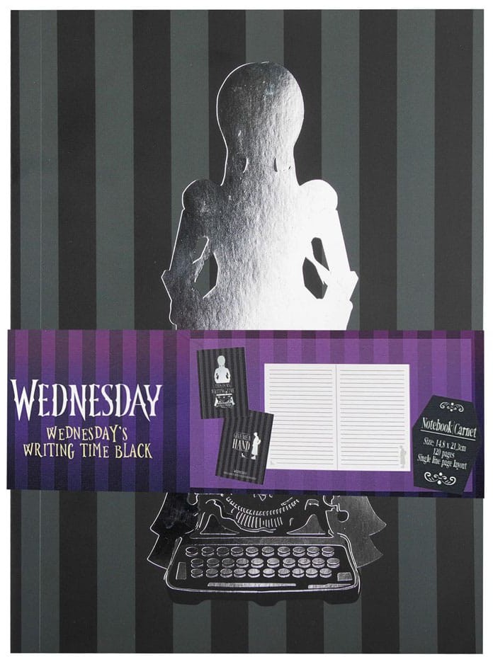 Uanset om du er forfatter, studerende eller bare på udkig efter en stilfuld notesbog, vil denne sorte og grå notesbog overgå dine forventninger. Forsiden af notesbogen har Wednesdays dristige og inspirerende sætning, "This is my Writing Time", skrevet over en silhuet af Wednesday. Dette design lader alle omkring dig vide, at du er seriøs omkring din skrivning!
