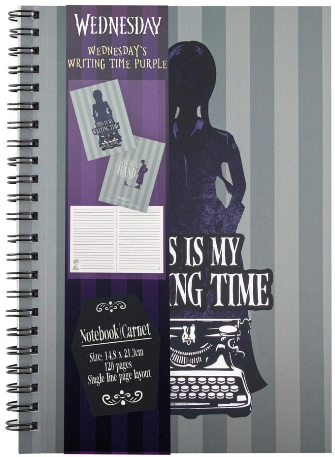 The front cover features Wednesday's bold and inspiring phrase, "This is my Writing Time," written across a purple silhouette of Wednesday. This design lets everyone around you know that you mean business when it comes to your writing.